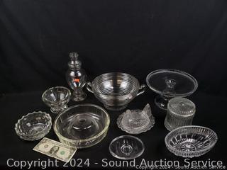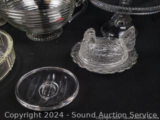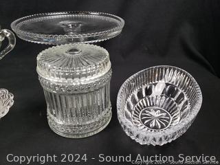 Lot #0070: Assorted Clear Glass Tableware & Decor