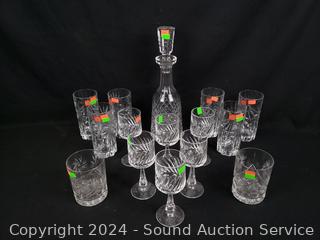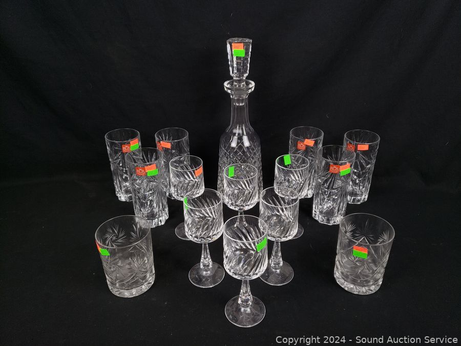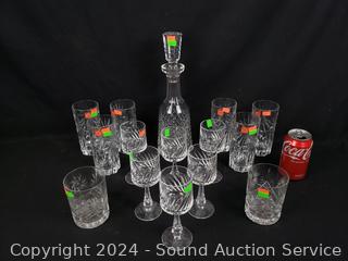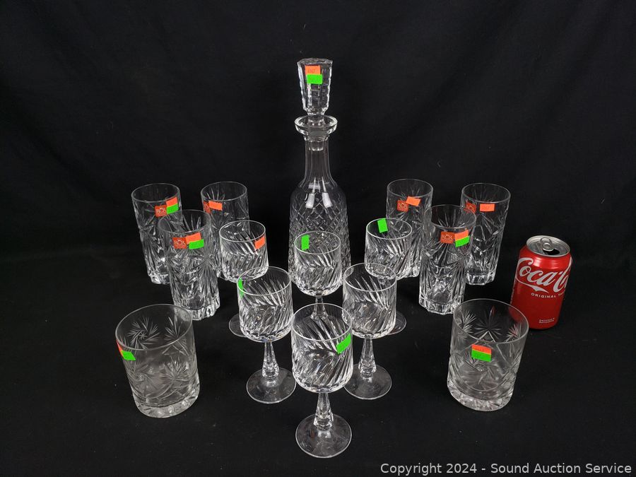 6 tumblers, 6 stemware, 2 highball glasses, decanter.