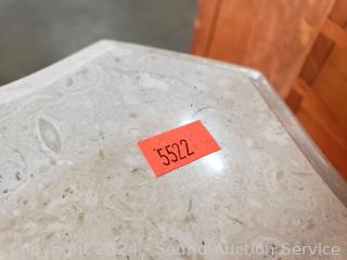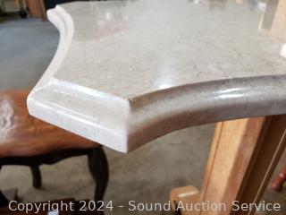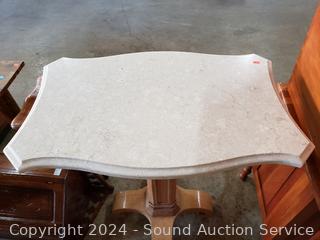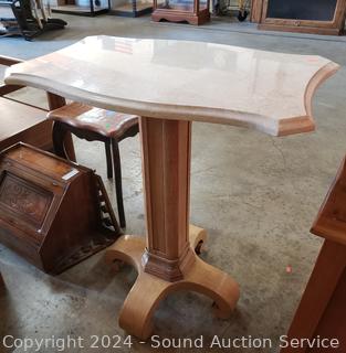 Lot #0011: Limestone? Top Blonde Wood Base Accent Table