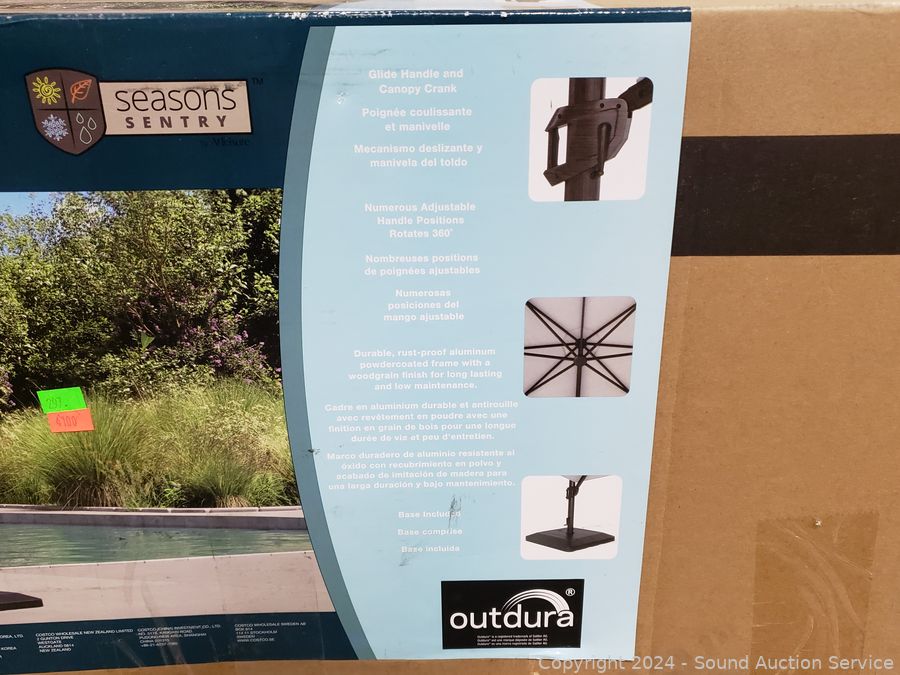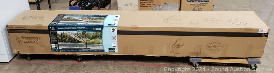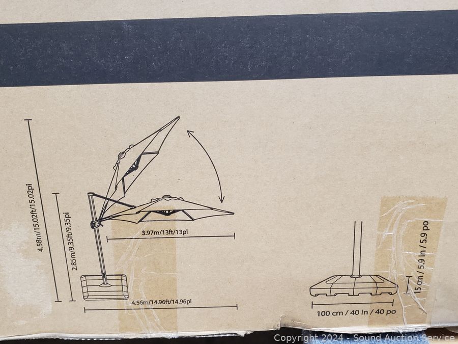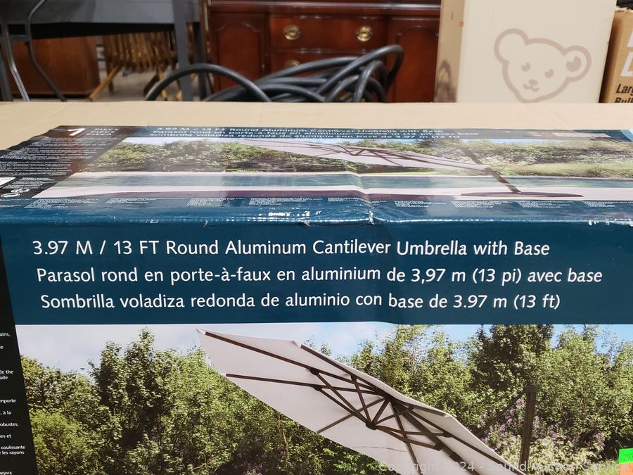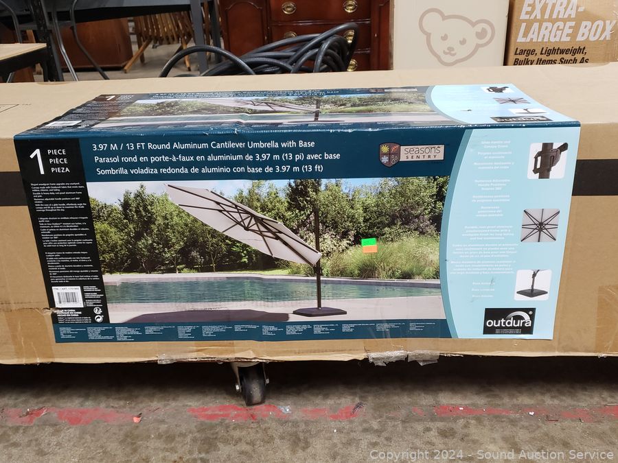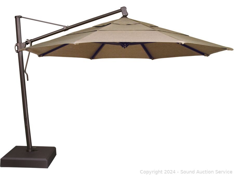 Lot #0297: Outdura 13ft Round Aluminum Cantilever Umbrella w/Base