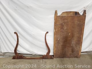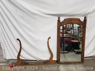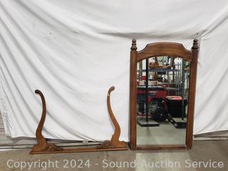 Lot #0048: Pecan Finish Wood Framed Wall Hanging Mirror & Harp