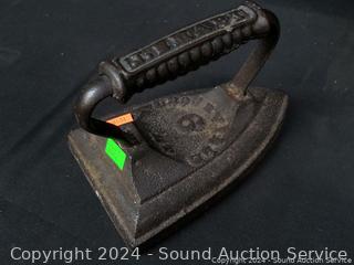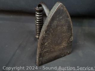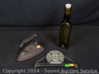 Lot #0057: Wall Decor, Sad Iron, Mirrored Shelf, Cut Bottle