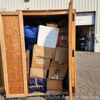 91" H x 60" W x 96" L. Refer to photos for vault contents, what you see in the photos is what we see, we have not gone through vaults. Preview online only, contents of vaults may not be gone through. Blankets & Vaults not included. As is, no refunds. $100 deposit required at the close of the auction upon winning a vault, refunded after complete removal of vault contents.