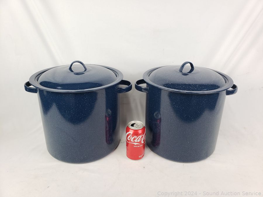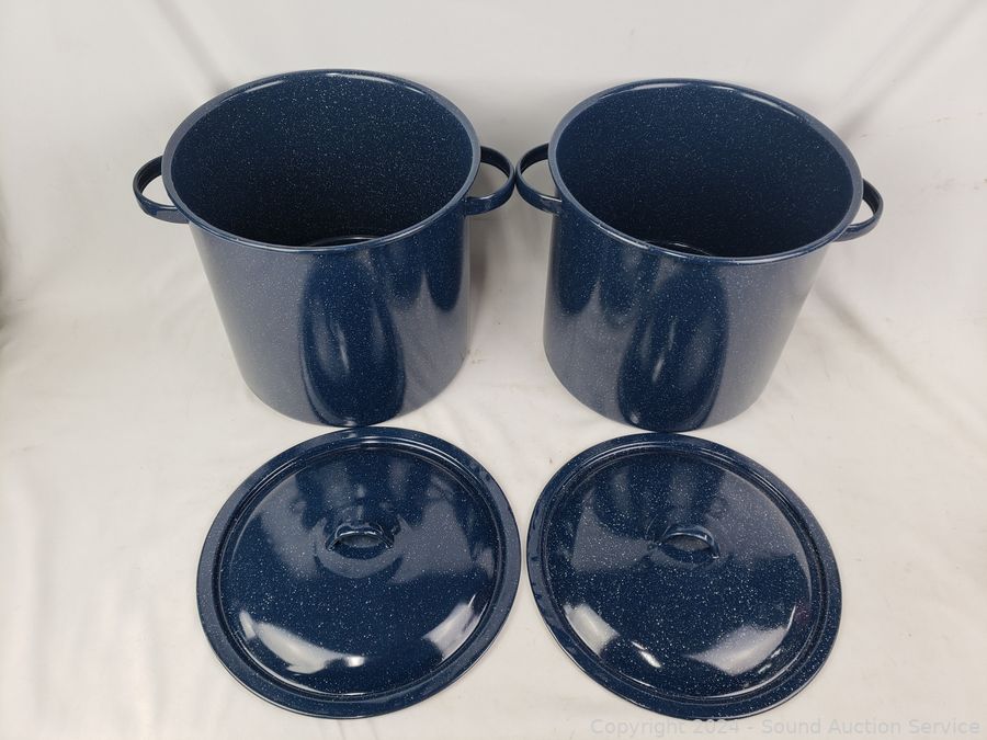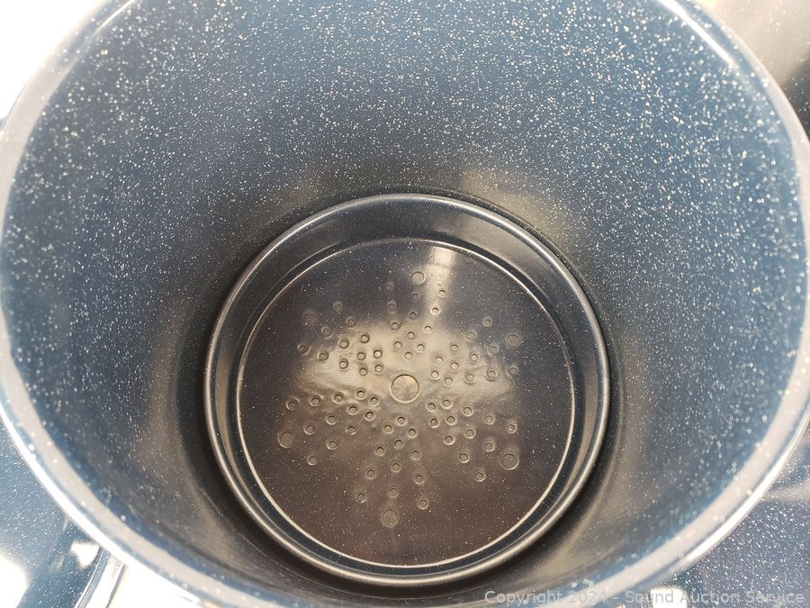 Lot #0062: 2 Enamelware Boiling Pots w/Steamer Inserts