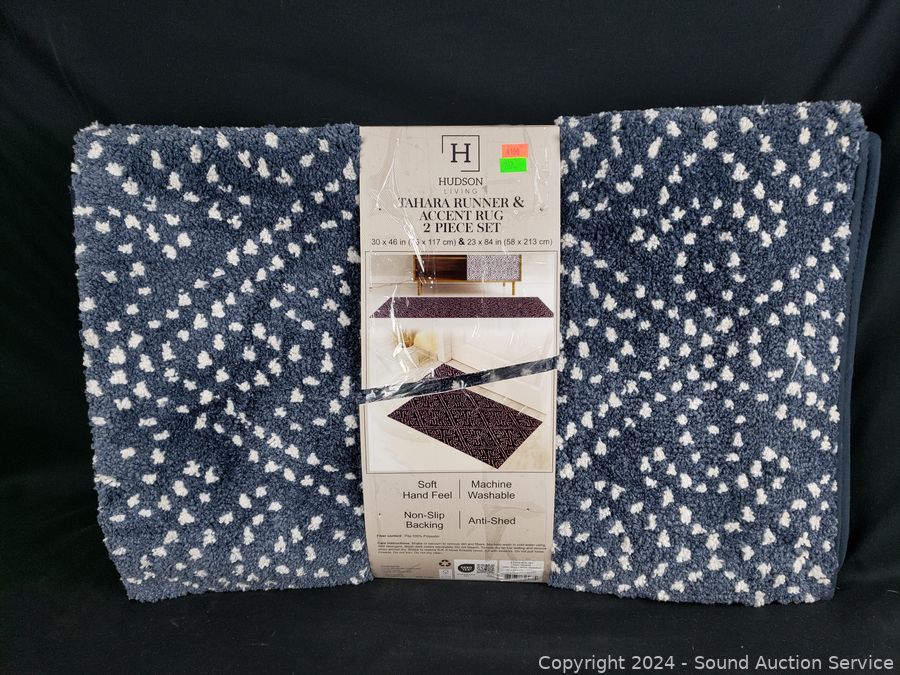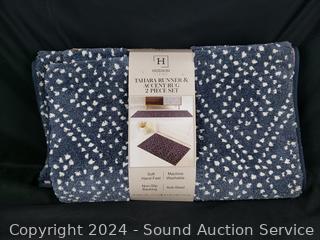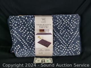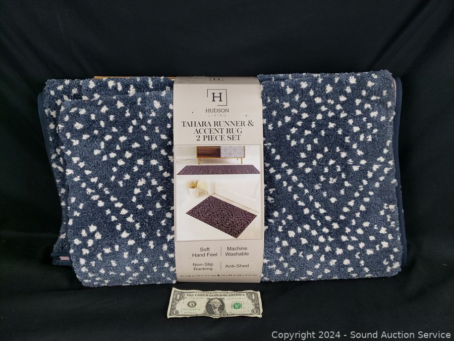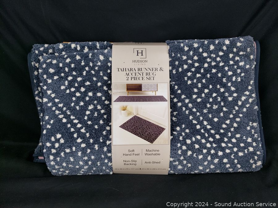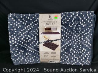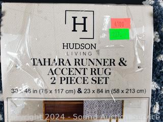 Lot #0237: 2pc Hudson Navy/White Medallion Tahara Runner & Accent Rug Set