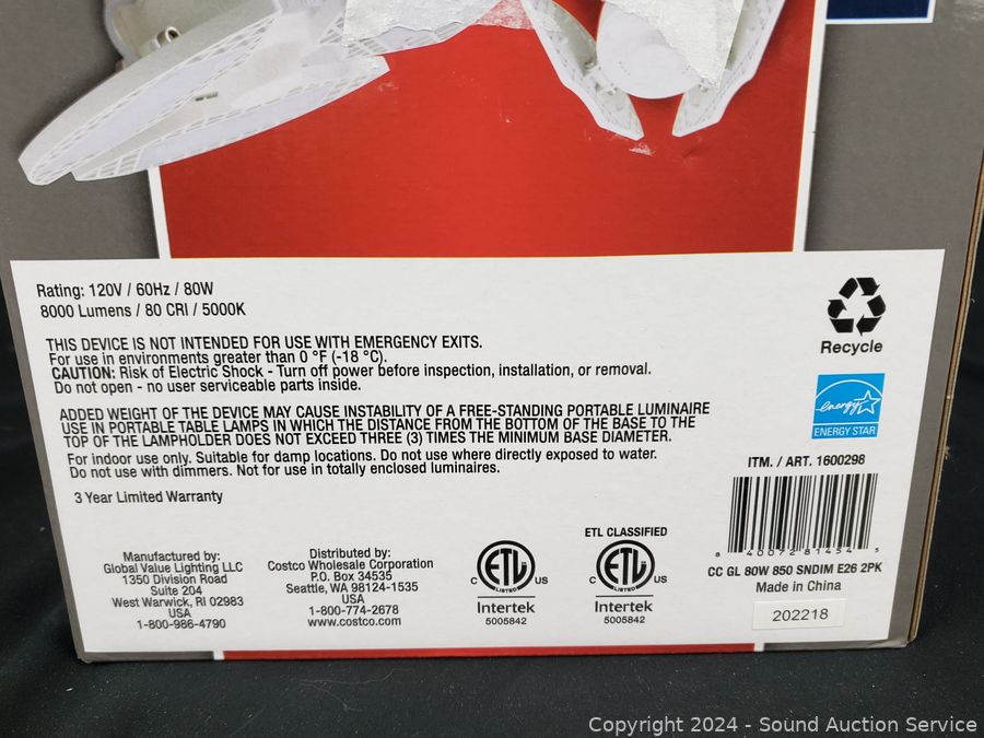 Lot #0098: 2pk 3-Panel LED Garage Lights