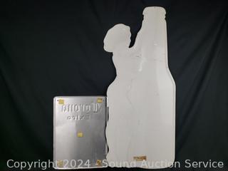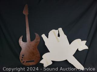 Lot #0101: 3 Tin & Cardboard Beer Signs & Metal Art Guitar