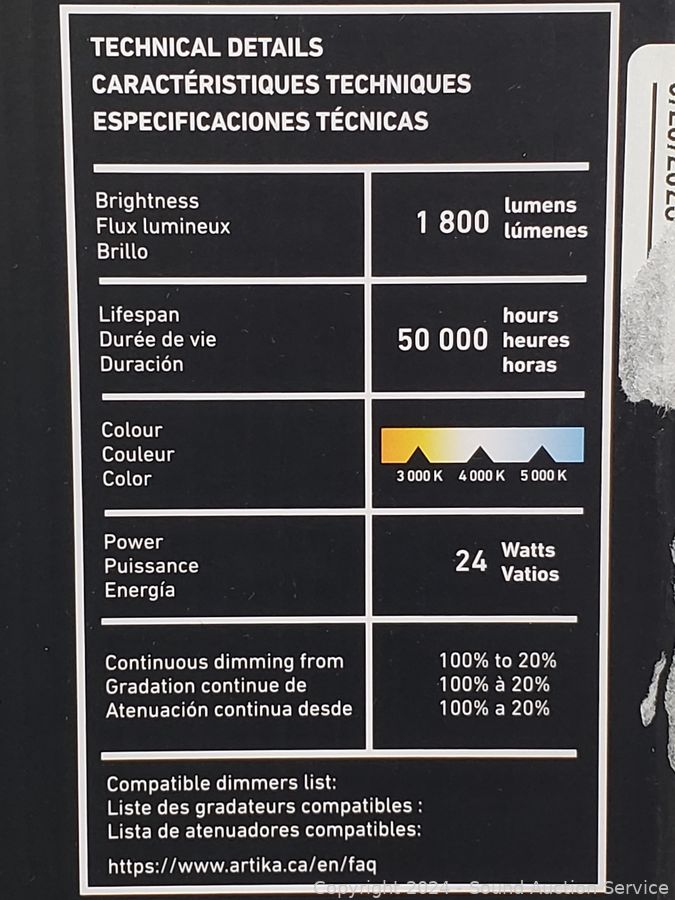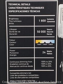 Integrated LED's, 24W, 1800LM, 3000-5000K color. 2.24" x 13.03". Appears to be functioning as intended.
