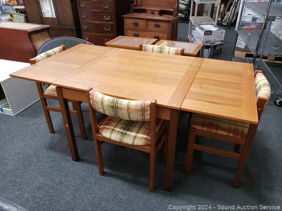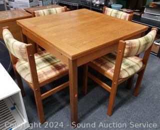 Lot #0013: Danish Teak Dining Table w/4 Plaid Chairs