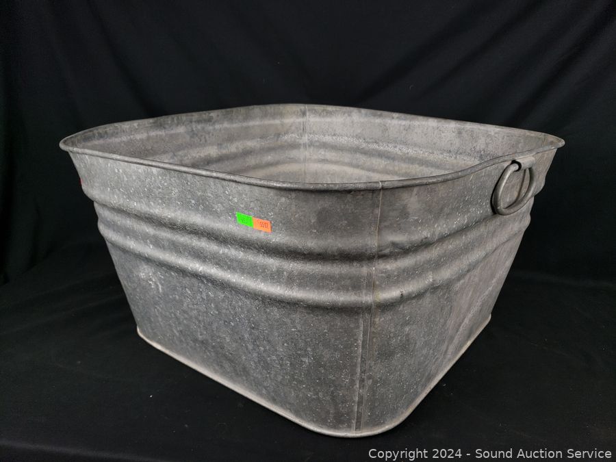 11.5" H x 21" x 23" tub. Some dents, dings. Refer to photos for more details.