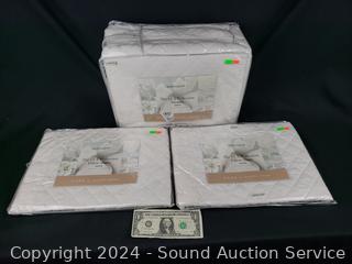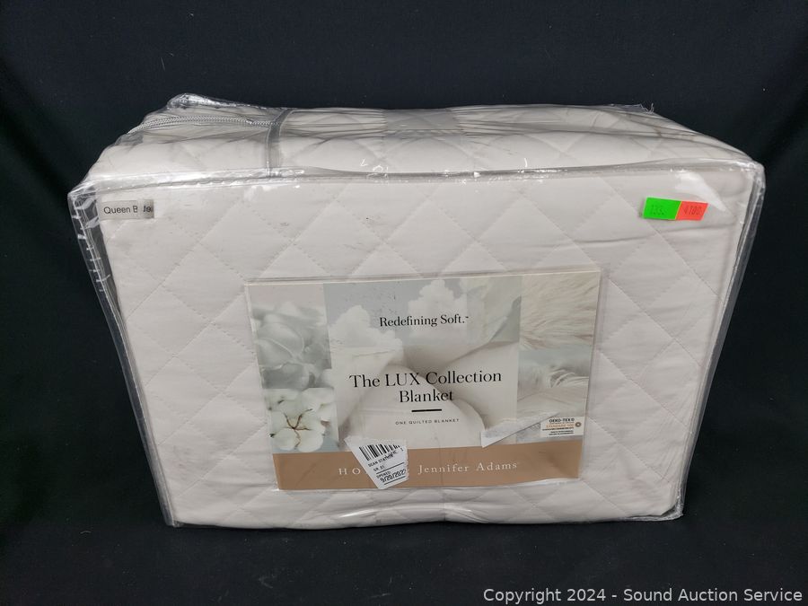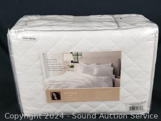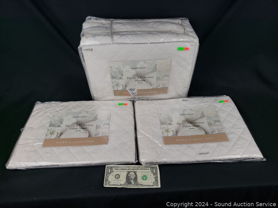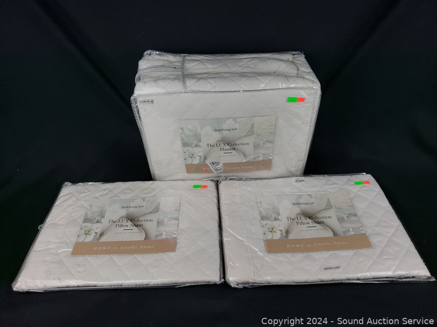 Lot #0133: Jennifer Adams The Lux Collection White Quilted Queen Blanket & 2 Pillow Shams