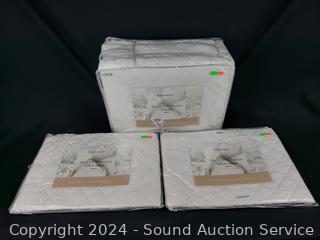 Don't appear to have been removed from packaging. 90" x 96" blanket, 23" x 30" shams.