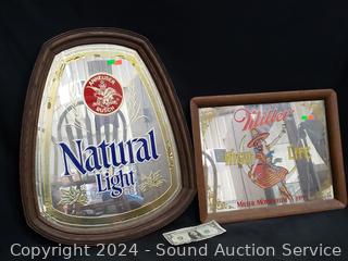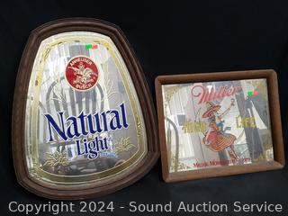 Lot #0046: Miller High Life & Anheuser Busch Natural Light Mirrored Beer Signs