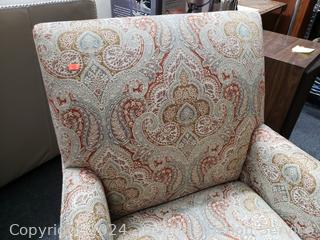 In excellent cosmetic condition. 34" H x 28.5" W x 17" to seat.