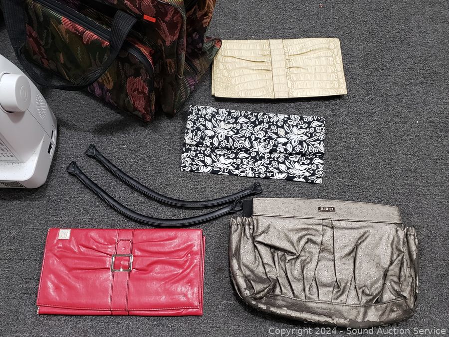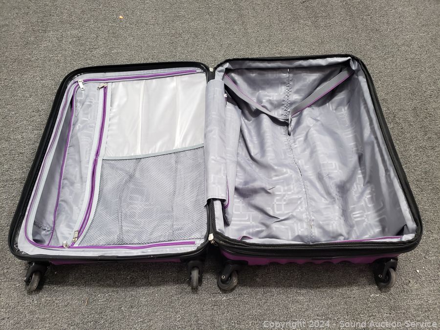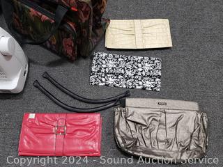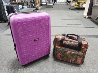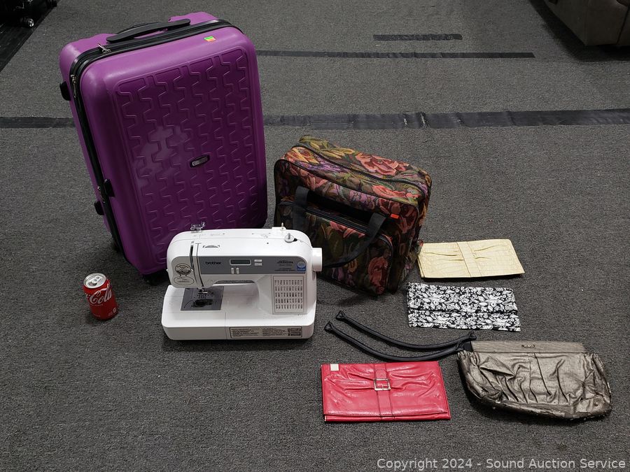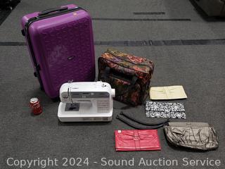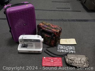 Lot #0161:     Small Balance - Purple Spinner Luggage, Purses & Sewing Machine w/Case