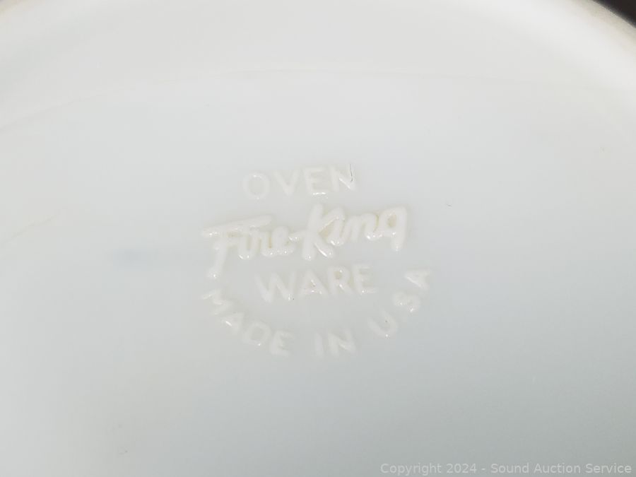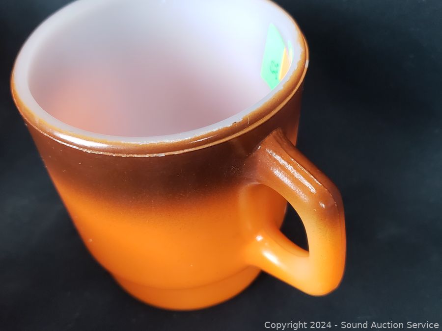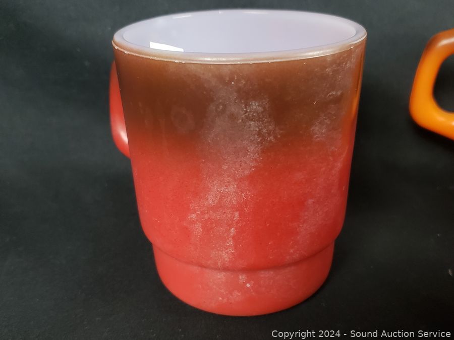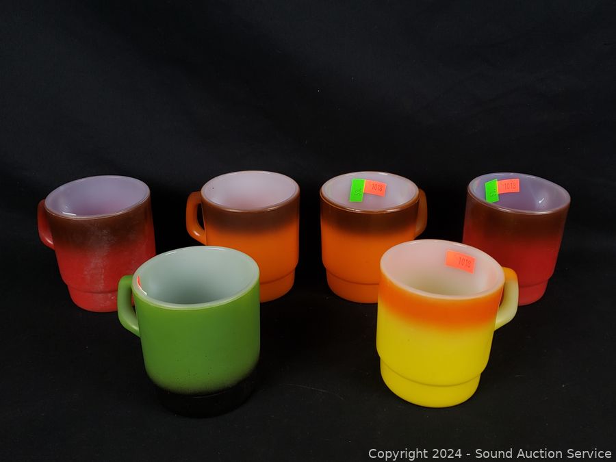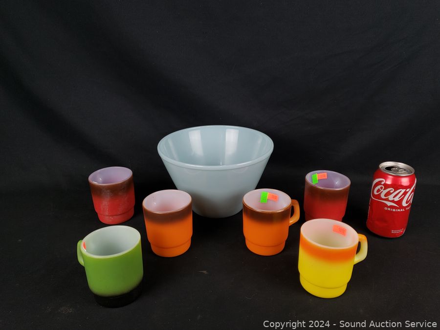 Lot #0053: Vintage Fire King Turquoise Mixing Bowl & 6 Coffee Mugs