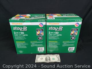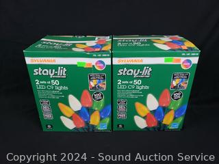 Lot #0142: (2) 2pk Stay-Lit 50 LED Multi-Color C9 Lights
