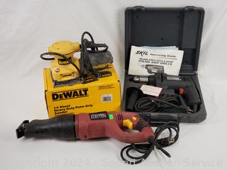 Lot #0124: DeWalt Palm Sander, Skil 1/2" Drill, Chicago Reciprocating Saw