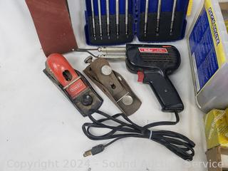 Lot #0086: Soldering Gun, Work Light, Turning Tool Holders, Planes, Drill Bits