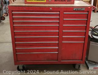 Lot #0001: Waterloo Professional 15 Drawer Rolling Tool Chest w/Some Tools
