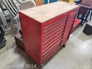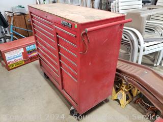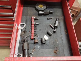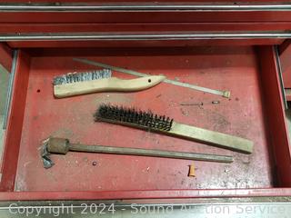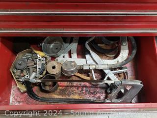 Comes with some tools, refer to photos for lot contents. 40.5" H x 41" W x 18" D. Various wear from use.