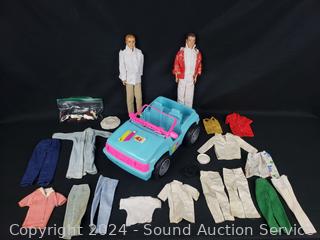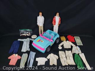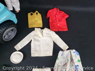 Lot #0134: 2 1960 Mattel Ken Dolls w/Original Handmade Clothing & 1994 Barbie Jeep