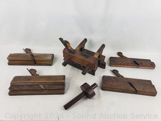 Lot #0198: 6pc Antique Wood Working, Molding Planes, Marking Gauge