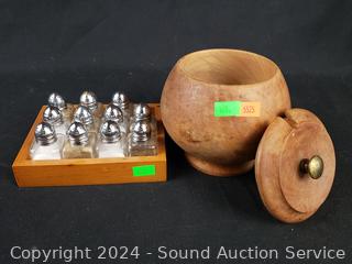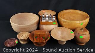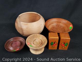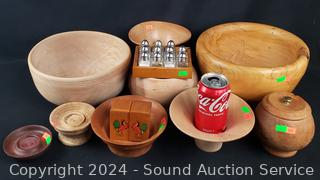 Lot #0163: Assorted Wooden Bowls & Individual Salt & Pepper Shakers