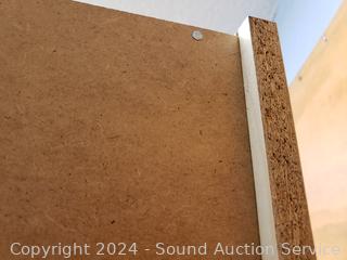 Adjustable shelves. In great cosmetic condition. Particleboard construction, veneer finish. 79.5" H x 31.5" W x 11" D.