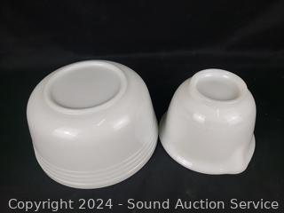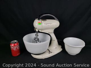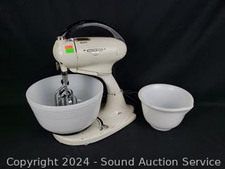Lot #0179: Vintage Hamilton Beach Countertop Mixer w/2 Milk Glass Bowls