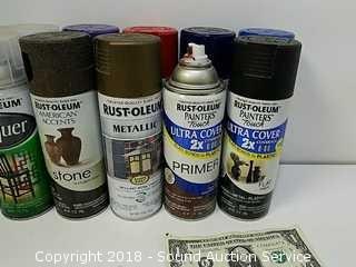 Most of it is Rustoleum. Mostly partial or half full cans.