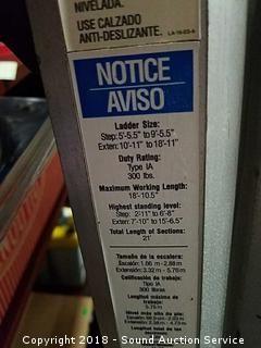 Comes with the scaffolding support brackets. Total length: 21ft. 300lbs capacity. Step ladder: 5.5ft - 9.5ft. Extension ladder: 11ft - 19ft. Model AL-22. Refer to photos for more information.