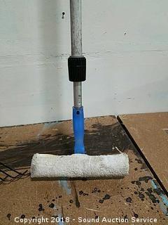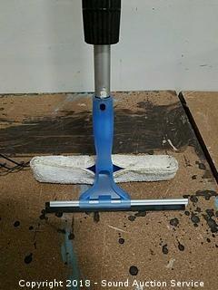 Squeegee has telescopic handle with a cleaning brush on one side, extends up to 11ft.