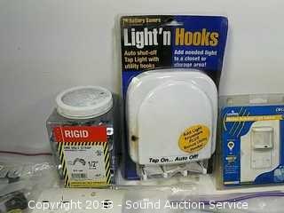 Includes: motion activated light switch, heavy duty cord plugs, light fixture, 1/2" conduit brackets, surface protectors, felt pads and more.