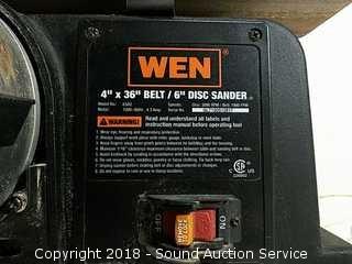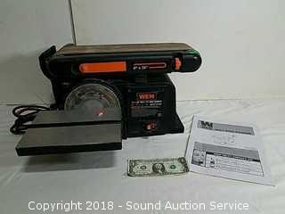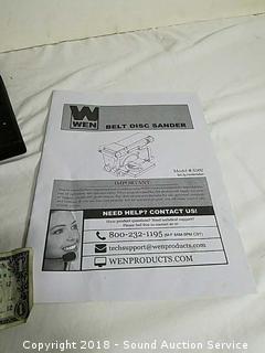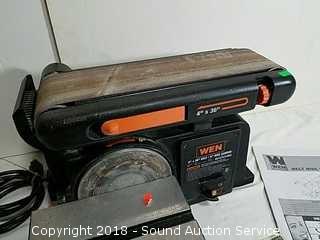 4" x 36" belt. 6" disk sander. Comes with instruction manual. Tested, works!