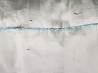 20" x 28". Feathers poking through, don't see any other issues.