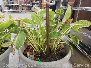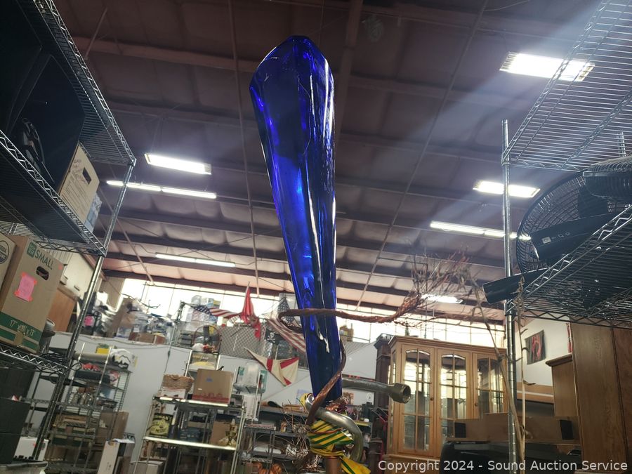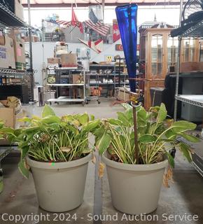 1 with cobalt bottle stake. 14" H x 16" Dia. pots.