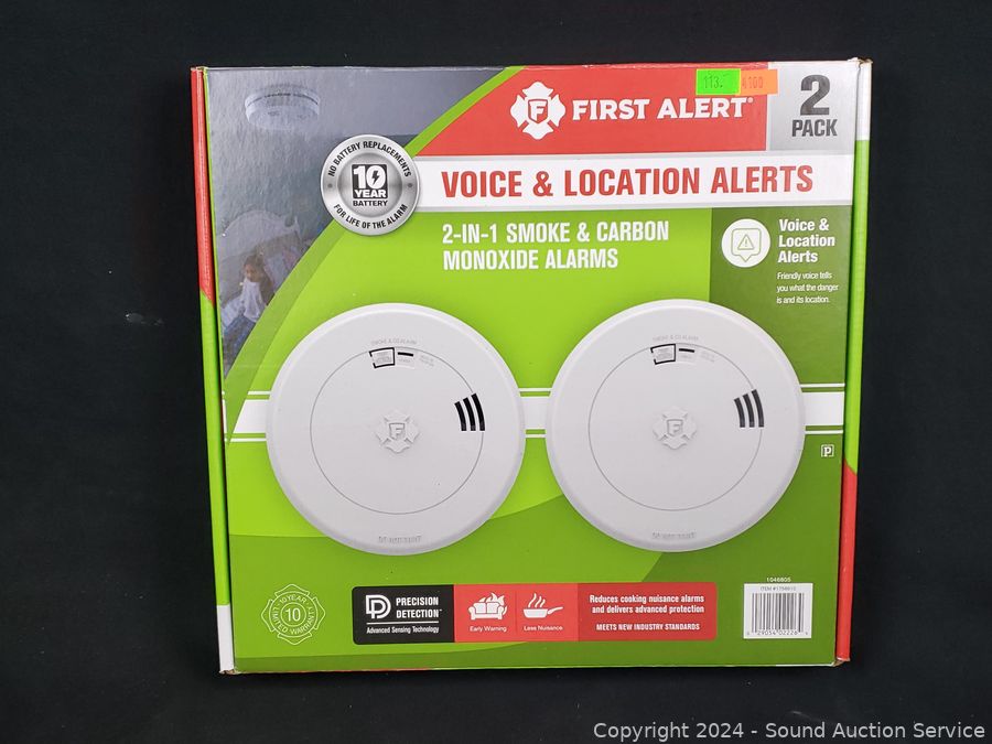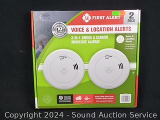 Lot #0113: 2pk First Alert Voice & Location 2 & 1 Smoke & Carbon Monoxide Alarms