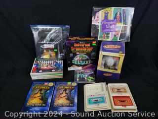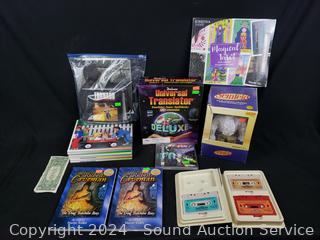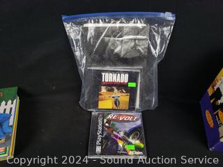 Tornado PC game, PlayStation Revolt game, Deluxe Universal Translator, Seinfeld S:5 & 6, Kids books, Teddy Ruxpin Cassette. Refer to photos for more details.