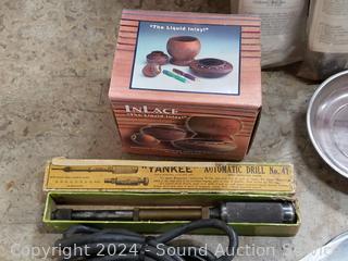 Do it yourself handscrew kits, nail puller, caulk gun, Yankee hand drill, wood mallet. Pro-Den Model 2000 Dental Scope, Craftsman magnetic tray, handsaw. Refer to photos for more details.