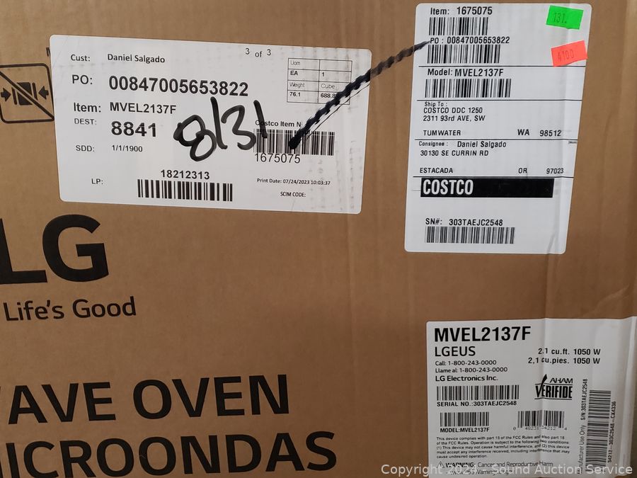Lot #0131: LG MVEL2137F 2.1 cu. ft. Smart Over-the-Range Microwave