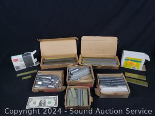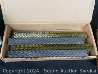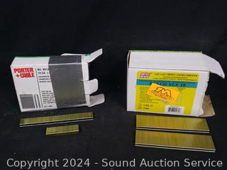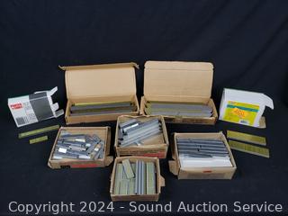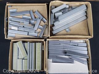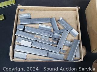 1-1/4" x 1/4" staples, 1/2" & 1/4" staples, 0.72" x 1-1/4" & 1-1/2" brad nails. Refer to photos for more details.