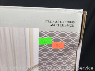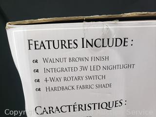 29.5" H x 20" x 8.9". Walnut finish, integrated 3W LED Nightlight. Appears to be functioning as intended, don't see any issues.