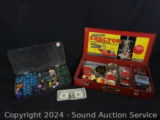 Lot #0158: Vintage 1948 Erector Set & Marbles