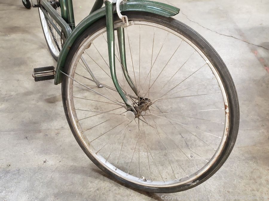 Lights are untested, tires are flat (unsure if holding air or not), back brakes are working, front brakes work, but need adjusted, no grabbing rims. Various wear from age use.