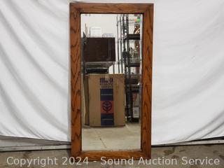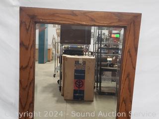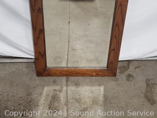 Lot #0266: Vintage Oak Framed Beveled Mirror