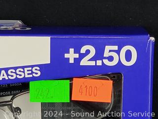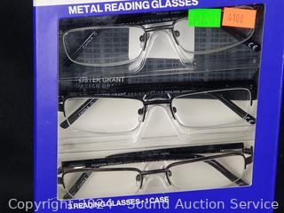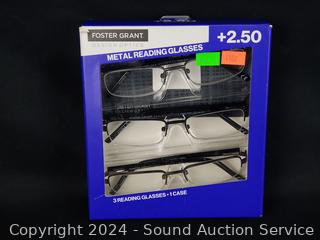 Lot #0242:     3 Foster Grant Metal +2.5 Reading Glasses w/1 Case