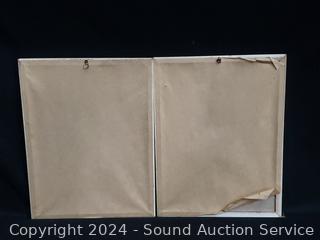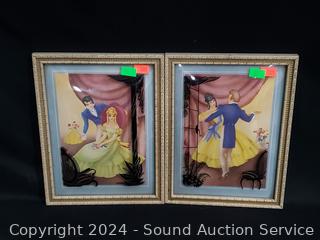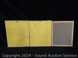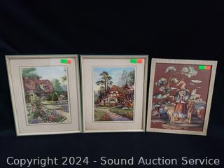 2 Victorian Ball bubble glass art, 6.5" x 8.5". 2 Country Cottages, 11" x 8.5". Japanese Boy w/Long Pipe, 8" x 10". Alsace tapestry 22" x 26".