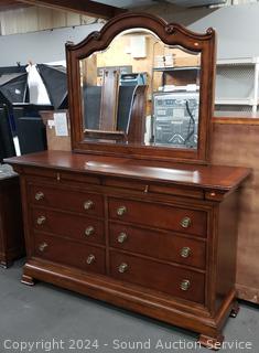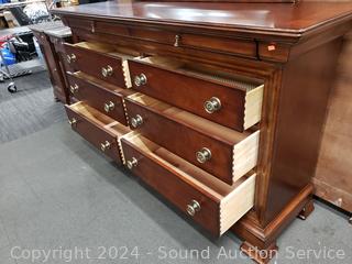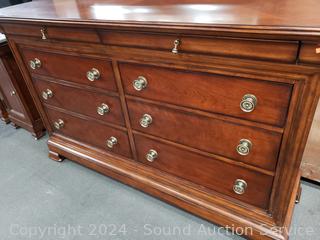 Lot #0005: Cherry Bassett 8 Drawer Vanity Dresser