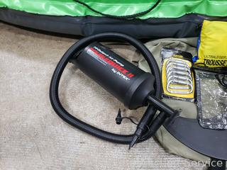 Comes with pump, paddle & other supplies. In great condition, holding air. Minor dirty spots from setting up.